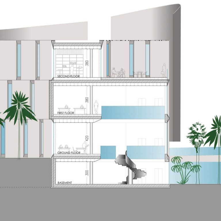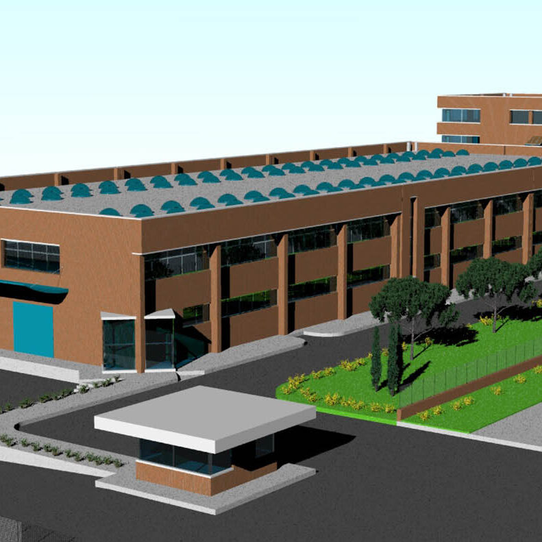 Ristrutturazione di un edificio per uffici e realizzazione di un laboratorio di ricerca costituito da un corpo ipogeo “seminterrato” e da un volume esterno per uffici.