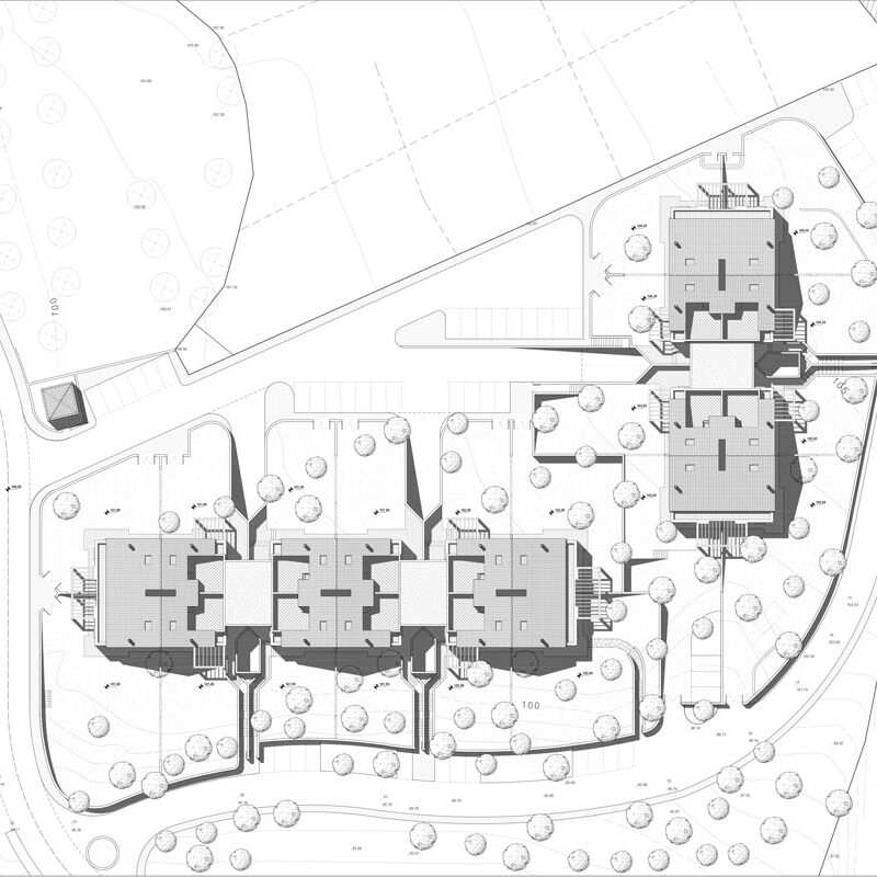 Progetto per venti unità residenziali suddivise in due edifici disposti perpendicolarmente uno all’altro