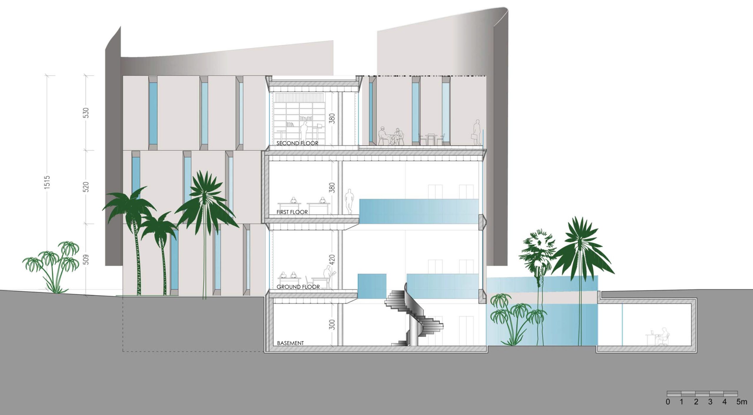 Il centro commerciale si sviluppa su tre livelli per un totale di 785 mq v.p.p. nei due piani commerciali e 875 mq v.p.p. nel piano interrato adibito a parcheggi e servizi pertinenziali.