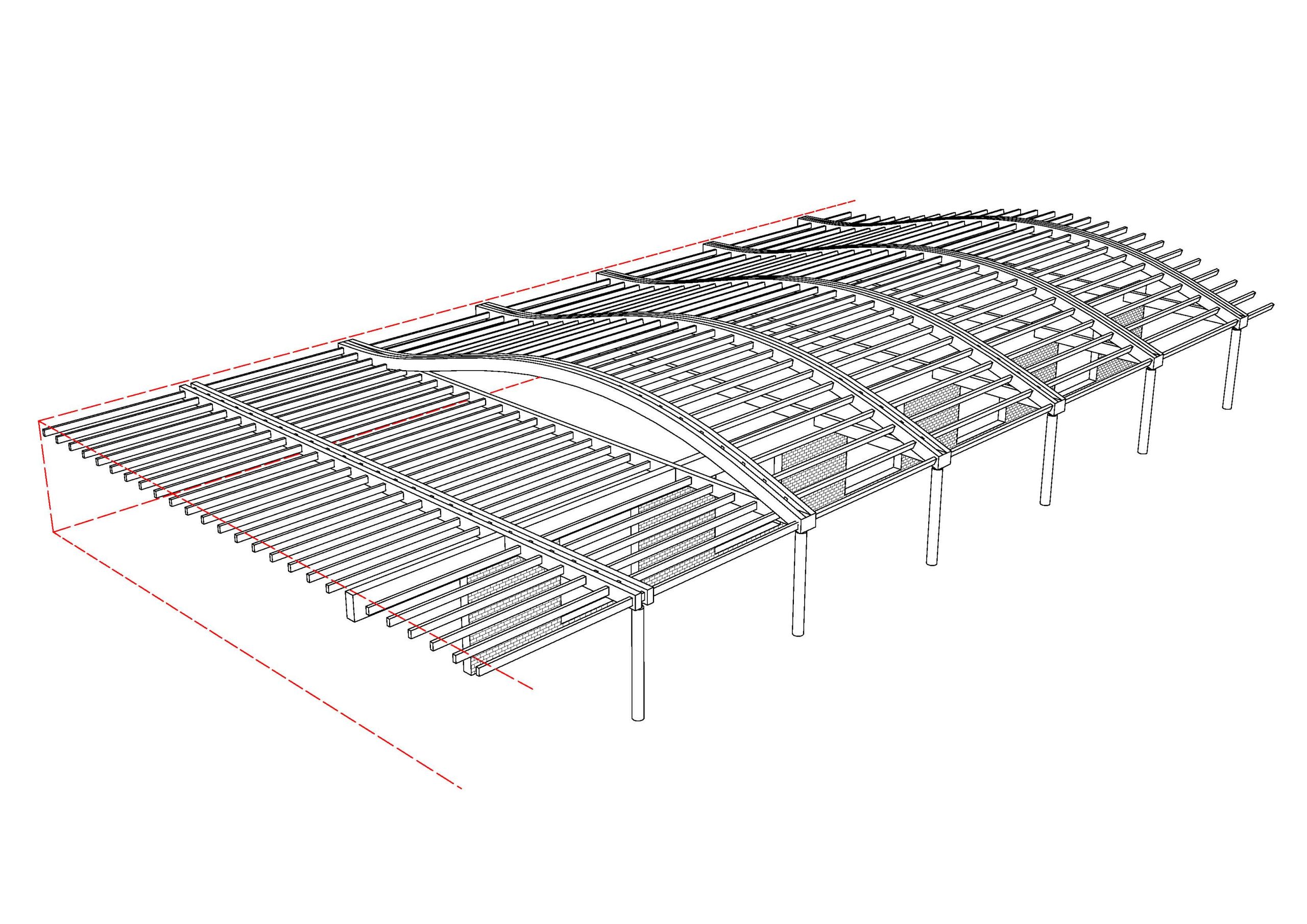 The structure is designed to be flexib/e, it is characterized by covered areas of different sizes and grouped according to the different needs.