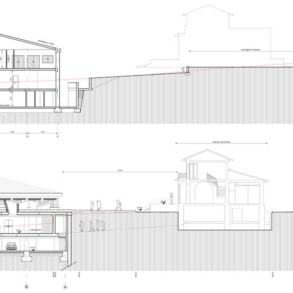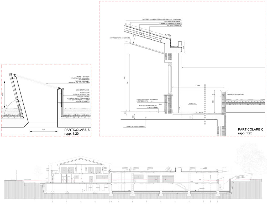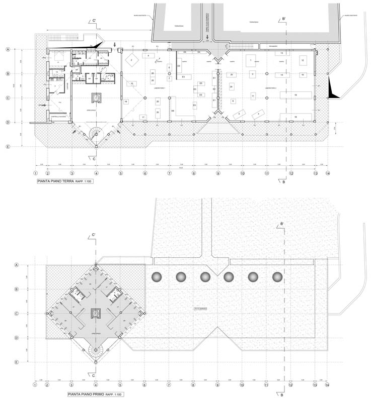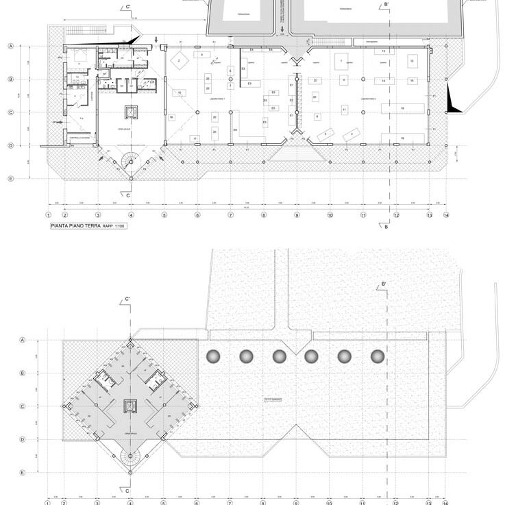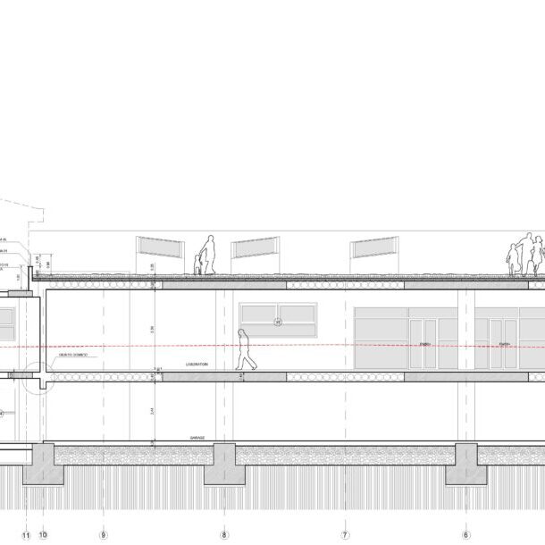 Ristrutturazione di un edificio per uffici e realizzazione di un laboratorio di ricerca costituito da un corpo ipogeo “seminterrato” e da un volume esterno per uffici. Per mitigare l’impatto della costruzione sul territorio circostante, immerso nel Parco dei Castelli Romani, è stato utilizzato il sistema di copertura a tetto-giardino per una superficie di circa 700,00 mq.